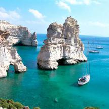 Milos is a beautiful island of volcanic origin in the southwestern end of the Cyclades. Its coastline is full of sandy beaches, pebbled coves and colorful carved rocks. The soil of Milos and its great mineral wealth has contributed to the economic prosperity of the island.